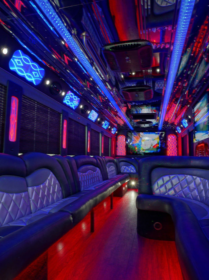 With most party buses you'll have access to amenities such as: large windows with privacy shades, televisions, entertainment systems and much more! Some of the special accommodations include leather seating which makes riding comfortable even on long trips. There is also mini bar set ups so they have access to their favorite drinks at all times during the trip.